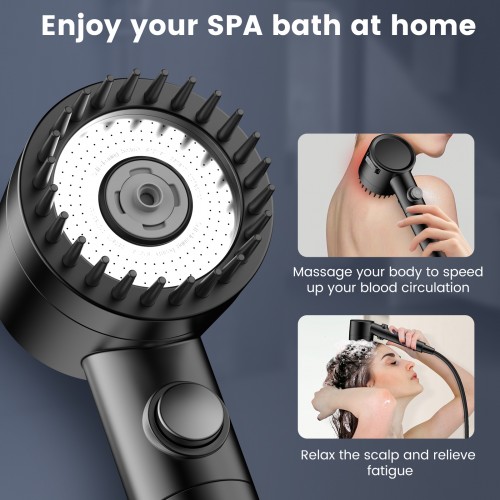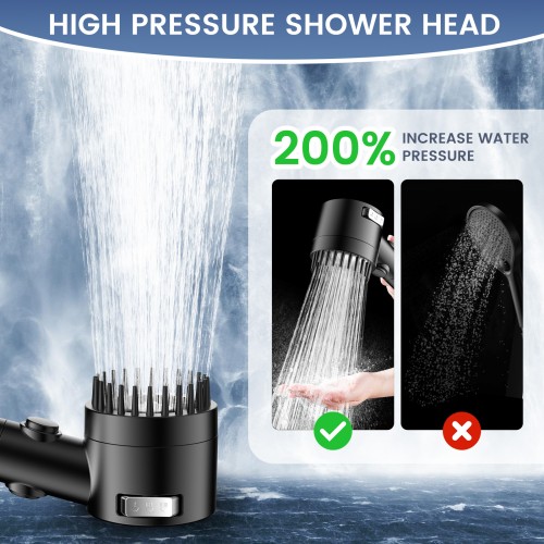 【High-Pressure Handheld Shower Head】This shower head with handheld utilizes advanced air-boost technology to aerate water, enhancing flow pressure for a powerful yet gentle spray. The air-infused droplets reduce skin irritation and deliver a spa-like shower experience, while the micro-pore nozzles ensure faster, denser water flow. This provides a full-coverage rain-like experience even with low water flow or pressure, effectively washing away soap and shampoo residue.The high pressure water flow rinses your body faster, reducing shower time and water.Vatex shower head increase up to 200% water pressure while saving up to 30% water compared to ordinary models.